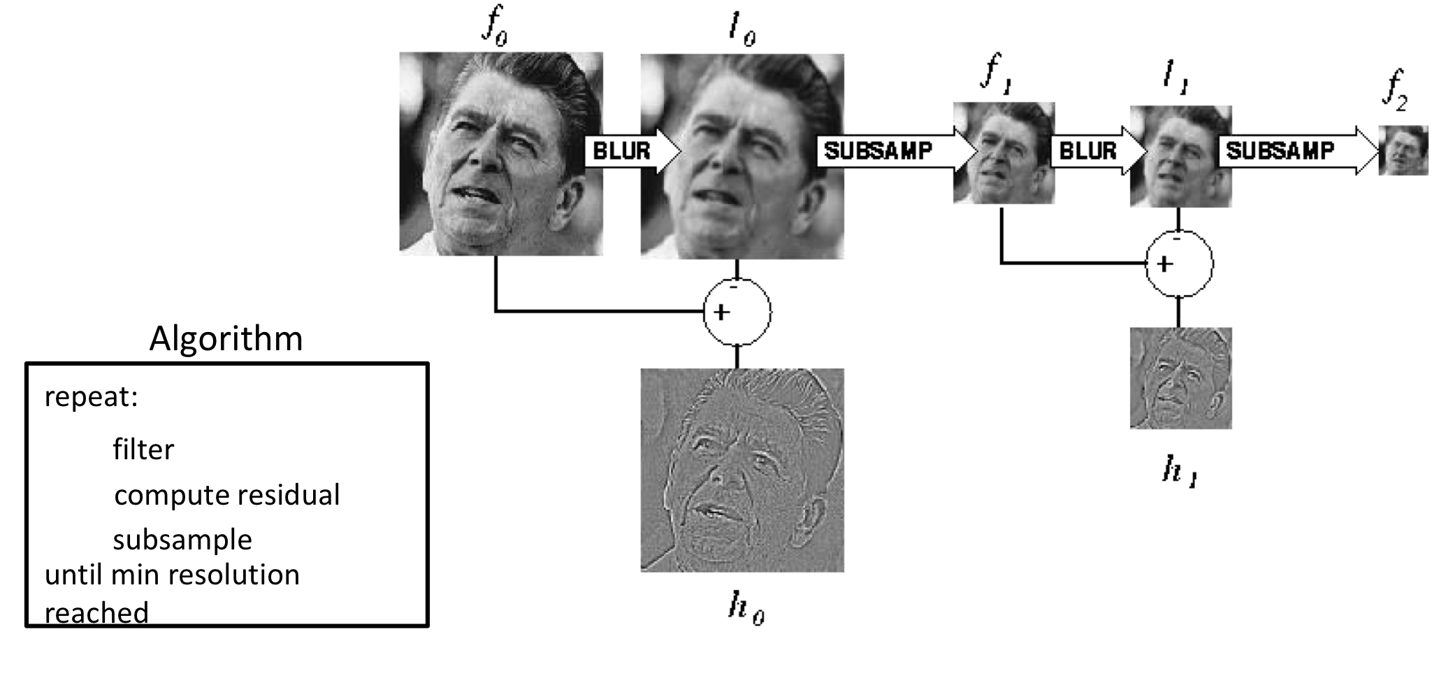 Gaussian image pyramid๋ฅผ ์ฐจ๊ทผ์ฐจ๊ทผ ๋ง๋ค ๋๋ง๋ค, Residual image๋ก Laplacian pyramid๋ ๋ง๋ค์ด๊ฐ๋ ๊ฒ์ ๋๋ค.