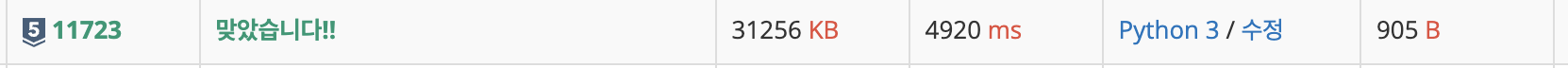https://www.acmicpc.net/problem/9655 9655번: 돌 게임 상근이가 게임을 이기면 SK를, 창영이가 게임을 이기면 CY을 출력한다. www.acmicpc.net 📕 나의 풀이 📕 최신 동향을 참고하여 최근에는 면접 때 문제 풀이 시 종이와 펜보다는 타이핑을 통해 생각을 정리하도록 하고 그것을 통해 말하거나 답변을 한다고 한다. 그래서 나도 문제 풀이 시 주석을 이용해 타이핑을 해보고 그것 또한 포스팅에 반영해보고자 한다. SK CY rock rock -> N times 1. even 2. odd 5 1 3 1 3 1 1 1 1 3 1 1 1 1 1 🧑🏻‍💻 나의 코드 🧑🏻‍💻 print('CY' if int(input()) % 2 == 0 else 'SK')