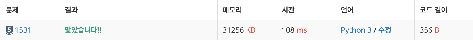 https://www.acmicpc.net/problem/1254 1254번: 팰린드롬 만들기 동호와 규완이는 212호에서 문자열에 대해 공부하고 있다. 규완이는 팰린드롬을 엄청나게 좋아한다. 팰린드롬이란 앞에서부터 읽으나 뒤에서부터 읽으나 같게 읽히는 문자열을 말한다. 동호는 www.acmicpc.net 📕 설명 📕 python의 indexing을 이용하여 풀이하였다. 🧑🏻💻 나의 풀이 🧑🏻💻 S=input() for i in range(len(S)): if S[i:]==S[i:][::-1]: print(len(S)+i) break